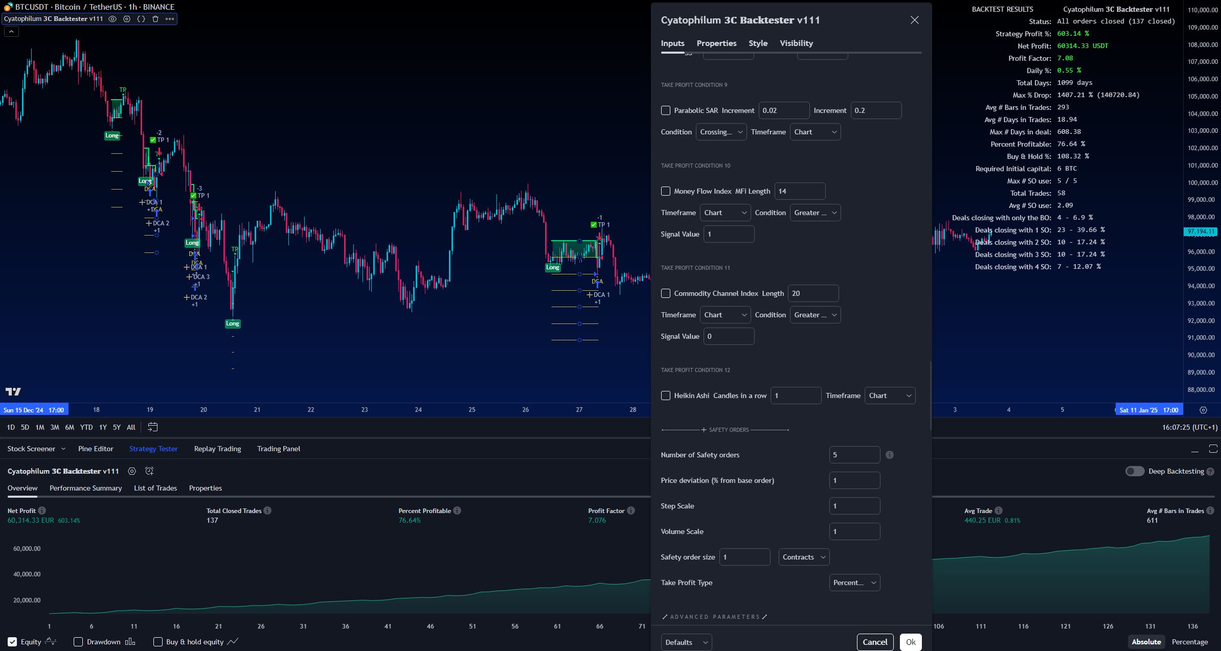 Each strategy has a backtest version, which allows to optimise for each exchange and parity.